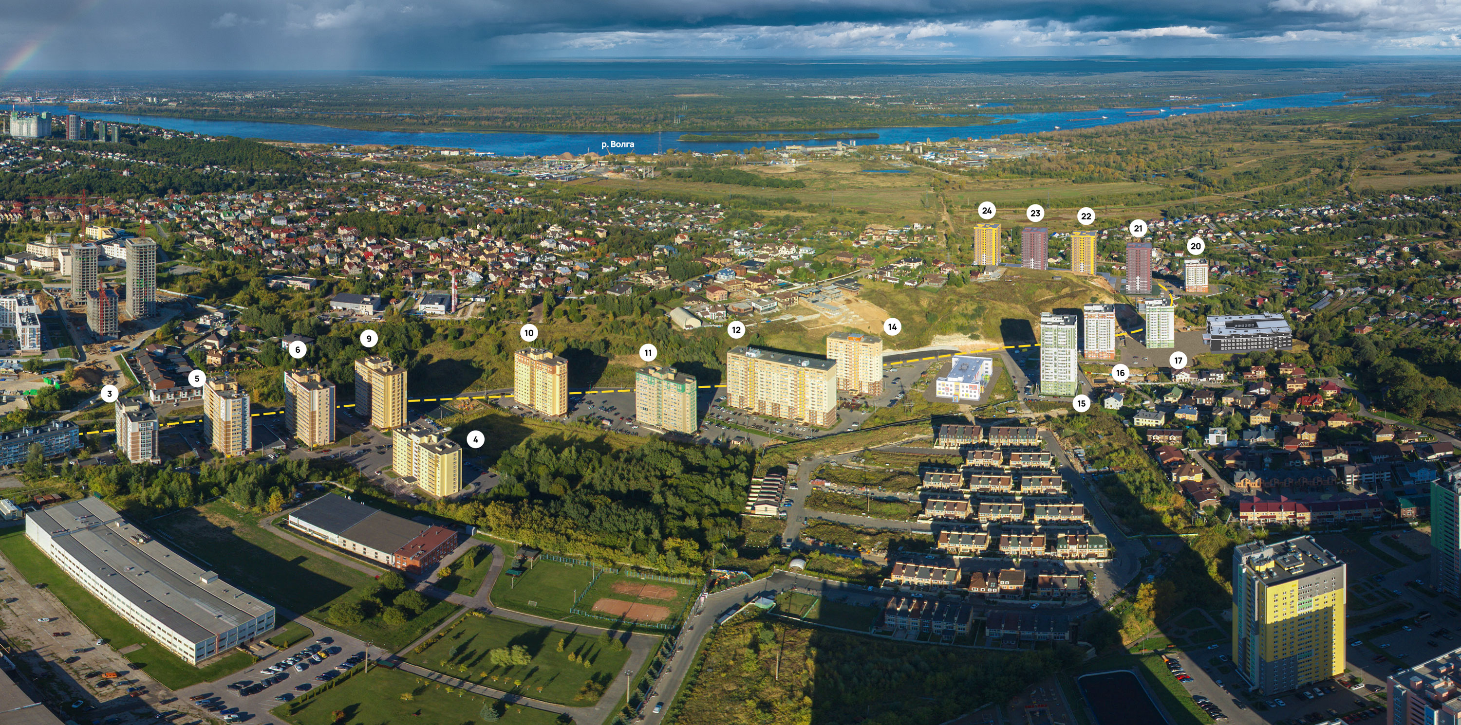 но 22 многоквартирных дома высотой от 14 до 22 этажей. Общая площадь застройки